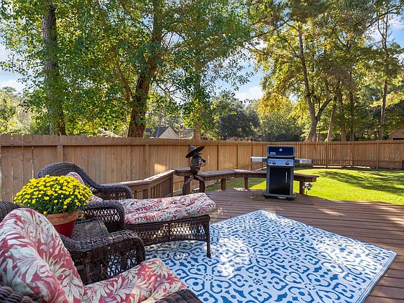 This sought-after floorplan offers multiple gathering spaces, high ceilings, elegant millwork, and a screened rear porch opening to a spacious deck—ideal for indoor-outdoor living. The kitchen with breakfast bar seamlessly connects to the family room featuring a cozy fireplace. Formal living and dining areas provide flexible entertaining options. The downstairs primary suite includes a luxurious bath with separate shower, whirlpool tub, and walk-in closet. Upstairs features a gameroom, two bedrooms, and full bath. Additional highlights: sprinkler system, ample backyard space suitable for a pool or play equipment, and numerous recent updates including new furnace and compressors, fence, water heater, dishwasher, lighting, tile, fresh paint, and new carpet (May 2025). Conveniently located near Alden Bridge Shopping Center, Barbara Bush Elementary, Mitchell Intermediate, parks, walking trails, and neighborhood ponds.