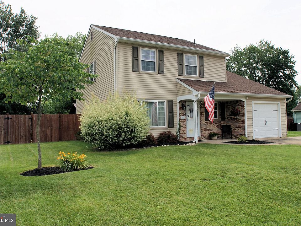 Welcome to this well designed and well kept Danforth model in the Tarnsfield neighborhood of Westampton. On the first floor you'll find a half bath, laundry room, formal living room, eat-in kitchen with island, dining room and family room (with recessed lighting, laminate hardwood flooring and decorative crown molding) Kitchen was renovated in 2023 and features stainless steel appliances (dishwasher and fridge updated in 2017, stove and microware in 2023). All appliances are included with the stackable washer/dryer also new in 2023. Upstairs you'll find beautiful Brazilian Cherry hardwood floors through out. The main bedroom is spacious and offers access to the full bathroom and a walk in closet. The bathroom is has tiled shower surround and a well designed vanity (check out the drawers). Fully fenced back yard is great for pets, kids and just pain fun. The Pergola, shed and kids playset all stay. In addition the fish pond (and fish) will also stay. Air sealing and insulation upgrades were done in both attics, bringing insulation value to R-53, and a new 16 SEER Rheem heat pump and air handler were installed in 2019!