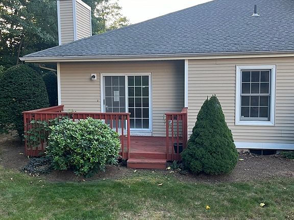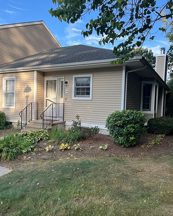 One level garden style end unit condo located in The Hamlet of Enfield. This condo offers a 4 rooms, 2 bedrooms, 2 full baths, fireplace, and laundry on main level. The galley kitchen looks out to a large living room/dining area. Living room has a fireplace and slider to private deck. Large master bedroom with full bath and plenty of closet space. Laundry is on main level. Large unfinished basement with plenty of storage or space to finish for additional space. Gas heat and central air! Don't miss out on this fantastic one floor unit.