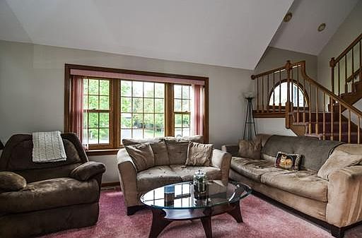 Imagine sitting on your deck in the comfortable shade of a 8x10 Sunsetter awning as you sip a cool drink gazing at your pool! This could be your future. Freshly painted and ready for your finishing touches. This contemporary split offers an open floor plan with an easy flow from kitchen to dining room to fireplaced living room with cathedral ceiling. Two generous sized bedrooms and a bath round out the 1st floor. The 2nd floor offers nice privacy for master bedroom with en-suite bathroom and walk in closet. There is also a spacious loft with nice and bright additional space. Front to back finished room in basement with pool table and a half bath - perfect for those weekend evenings when you wish to stay at home and have fun. Wonderful neighborhood, perfect for walking or riding bikes. The water heater is brand new. When basement was constructed they upgraded with a steel "I" beam to open the space. Washer, dryer and utility sink in basement included.