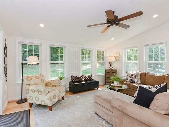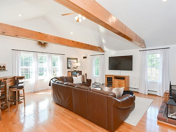 WEEKEND OPEN HOUSE CANCELED - OFFER ACCEPTED - Rare opportunity to own this stunning Colonial with farmers porch, sitting atop a corner lot with rolling lawns and accent gardens. Upgrades to many systems and features. This home will have a newly designed and installed on site 3-bedroom system for years of worry-free living. Flexible and bright space allows for remote working, family gatherings and comfortable living. First floor features an open floorplan with many options. Great entertainment space in the large kitchen, dining and sunroom. Second floor features a great sized primary bedroom with en-suite and two other bedrooms and guest bath. The basement features some finished area as well for more workspace or gym. Outside, there are multiple living space options with a deck off the sunroom leading to a firepit seating area. Stand-alone shed for additional storage too. The first floor beamed great room features surround sound.