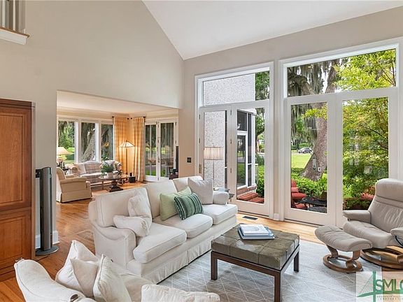 Light filled patio home with large windows, gas fireplace, extensive woodwork and hardwood floors with beautiful lagoon view. Enjoy entertaining in this home with an open floor plan, stainless appliances and windows galore. Owner's bedroom on main floor with newer bath complete with soaking bathtub, separate shower and double vanity. Upstairs includes 2 generously sized bedrooms, a full updated bath as well as an office with ample storage. Relax on the screen porch and patio facing lagoon. 2 garage with additional golf cart bay. This home is located on an expansive corner lot with adjoining TLA open space. Solar panels installed by homeowner for greener living! The Landings is a gated community on Skidaway Island with two marinas, parks, walking trails and The Landings Club, which requires membership, has 6 golf courses, 5 clubhouses, a fitness center, 30+ tennis courts, pickle ball and more.