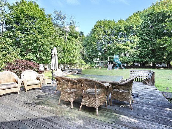 New City! Custom-built Center Hall Colonial set on a beautiful, flat property on a desirable street. This home offers oversized rooms throughout, including a spacious kitchen with granite counters and wood cabinetry. Sliding glass doors from the kitchen to a deck overlooking the level backyard.. Hardwood floors and carpeting as seen. The two-story entry leads to 4 extra-large bedrooms upstairs, each with abundant closet space. Enjoy a 3-car garage, full finished basement with media room and family room, This home has so much to offer and incredible potential!
