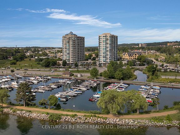 Welcome to The Water View Condominiums on the waterfront of Kempenfelt Bay, Lake Simcoe! This spectacular "Sandpiper" model at 6 Toronto Street, Barrie offers 1 bedroom + 1.5 bathrooms with southern exposure, filling this bright 900 sq.ft. suite with natural light throughout the day.Enjoy a spacious open-concept layout with excellent flow and a walkout to a private balcony overlooking Barrie's marina, boardwalk, and waterfront trails. The well-appointed kitchen features a breakfast bar, full appliance package, and ample storage. The primary bedroom offers a walk-in closet and a 4-piece ensuite with jetted soaker tub and glass-enclosed shower, while a 2-piece guest bath and in-suite laundry add everyday convenience.Residents of The Water View enjoy an impressive range of resort-style amenities, including an indoor pool, hot tub, sauna, well-equipped fitness centre, party room, games room, library, guest suites, outdoor pond, change rooms with showers, and visitor parking. The building also features updated common areas, a welcoming lobby with lounge seating, and secure entry.All just steps to Barrie's vibrant downtown, shopping, restaurants, entertainment, and year-round waterfront activities. Easy access to Barrie GO Transit, public transit, and Highway 400-ideal for commuters heading south to the GTA or north to Muskoka cottage country.Experience lakeside luxury and carefree waterfront condo living in one of Barrie's most sought-after addresses!