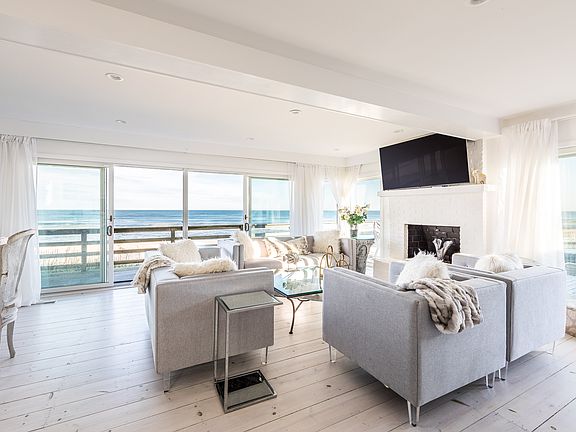 This Sagaponack beach house is a moveable fest of aquatic joys. You can sti back, relax and watch the dolphins frolicking and whales jumping from your upper and lower decks. Totally renovated in 2018, this four bedroom & four bathroom home with a sleeping atrium which leads the way to a separate guest room is the quintessential Hamptons beach house. With beach and ocean views from every room in the house, you can swim, surf, paddle board or wind surf steps from your bedroom. End your evenings with a cookout on the beach, then count shooting stars from your hot tub. This is the most unique ocean front property in the Hamptons and being on the ocean is what makes summer in the Hamptons complete.