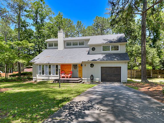 This charming craftsman style home is located in a quiet Aiken neighborhood. This great location is minutes away from shopping, dining, and the Houndslake Country club. The main level features a living room with fireplace and cathedral ceiling with painted beams, a spacious eat-in kitchen with island and pantry, and a formal dining room. Take the opportunity to view amazing sunsets and sunrises as the plentiful natural light streams in through many rooms throughout the house. The home has been freshly painted. The butcher block kitchen countertop, island, and the tiled backsplash have been updated. New carpets have been installed in the bedrooms. LVP throughout the common areas. Spend lovely evenings hosting BBQs, playing, or just enjoying the outdoors in the large oversized fenced backyard. There's plenty of space to install a pool or park an RV. Beyond the fence, surrounding the neighborhood, is a newly constructed walking/biking trail.