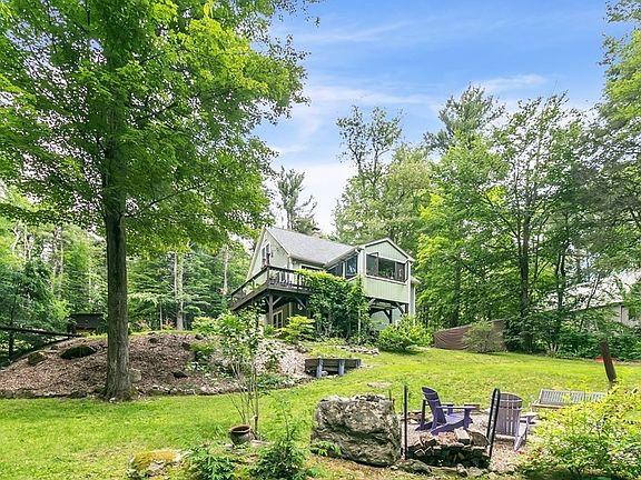 Lakeside retreat in the foothills of the Berkshires! Offered at a price you can't beat! Beautiful year-round, gated community of Wildwood w/ 5 private beaches to enjoy. New England's best hiking, biking, swimming & boating. Easy commute to NY, CT & Boston. Own this spacious cape w/ extraordinary in-law or Airbnb income potential. 1st & 2nd levels feature rustic wood floors, 3 beds, 1.5 baths and unique open-concept living space that glows with natural light. Expansive sliders & windows connect you w/ nature & glimmering sunset views of both spring-fed ponds. Updated kitchen w/ stainless appliances & breakfast bar looks out to the wrap-around deck. The bright & airy walkout basement features a bonus room, full bathroom, additional rec room, and outdoor deck just beyond the fire pit - the perfect stay for guests. Fiber-optic Wifi available. One-car garage & large storage barn. Exceptional clubhouse & tennis courts provide amenities w/in the community. Kick back & relax! Summer is here!