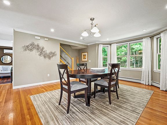 Welcome home to this beautiful 3-bed, 2.5-bath Colonial in Dudley! Perfectly situated at the end of a cul-de-sac on just under an acre, this property offers the privacy you’ve been searching for. A charming farmer’s porch sets the tone as you enter inside, where you're greeted by hardwood flrs throughout. The kitchen features abundant cabinet space & modern SS appliances, flowing seamlessly into the dining area & cozy living room w/ a wood-burning fireplace & access to the back deck. A formal dining room, dedicated home office, and 1/2 bath complete the 1st flr. Upstairs, retreat to the expansive primary suite w/ cathedral ceilings, a large walk-in closet, & a spa-like en-suite bathroom w/ dual vanities and high-end finishes. 2 additional bedroom's & a full bath are just down the hall. The finished basement offers a bonus room for even more flexible living space. Enjoy the back deck w/ views of the backyard plus the convenience of a 2-car garage! This home truly checks all the boxes!