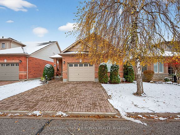 Charming Detached 1+1 Bedroom Bungalow Overlooking the Golf Course. This beautifully maintained bungalow offers peaceful living with a private deck backing onto the golf course. The primary bedroom features hardwood flooring, double closets, and a private ensuite. The bright eat-in kitchen includes ample cabinetry and a large bay window. The combined living and dining area boasts hardwood floors, a cozy gas fireplace, and a walkout to the deck. Convenient main-floor laundry is included. The lower level extends your living space with a spacious family room, an additional bedroom, and generous storage areas. The home also includes a single-car garage and an interlock driveway with parking for two vehicles. Enjoy all the amenities of the Briar Hill community while being just minutes from the town of Alliston.