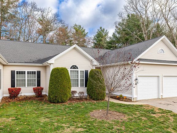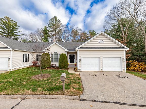 Impeccably maintained 2-bedroom, 2-full-bath end-unit condo in one of the area's most sought-after 55+ communities. This light-filled home welcomes you with freshly refinished hardwood floors, brand-new bedroom carpeting, fresh interior paint, and a pristine 2-car garage complete with a new epoxy floor. The bright, spacious kitchen offers ample cabinet space, clean finishes, and a comfortable layout that opens nicely to the dining and living areas-perfect for everyday living and easy entertaining. The living room features a propane fireplace and sliders that lead to a lovely three season porch and adjoining deck, all overlooking a beautifully large and level yard. The spacious primary suite includes a full ensuite bath and a generous walk-in closet. A second bedroom and additional full bath provide ideal accommodations for guests. Additional highlights include a large walk-out basement offering exceptional storage or future finishing potential, propane heating, and an unbeatable location close to shopping, restaurants, and major highways. A truly move-in-ready home that blends comfort, convenience, and exceptional care throughout.