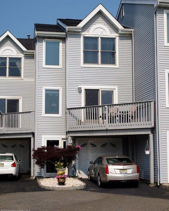 FANTASTIC NY AND JERSEY SHORE WATERVIEWS FROM ALL THREE LEVELS!! And go STEPS from your front door to the beach!! Beautiful meticulous town home with an excellent location that also has access from the first level deck to the adjacent rear neighborhood for additional guest parking. Terrific interior features include a beautiful kitchen w/granite ctrs & new stainless steel appliances. Gorgeous hardwood flooring in the living/dining area plus a completely renovated first level that has a bonus room/den/office/3rd bedroom possibilities. Master bdrm has vaulted ceilings & waterviews, 3 closets, & mstr bth w/ soaking tub. Plus rare fee simple complex, no maintenance fees! Owner commuted to NYC from this convenient town location close to NJ parkway, Ny buses, Hazlet train and more!