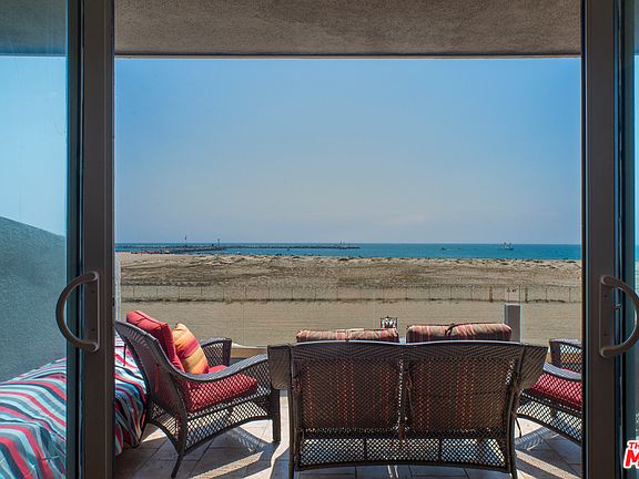 Fabulous ocean front, top floor condo on the Marina del Rey Peninsula! This airy, split-level 3 bed/3 bath unit has been tastefully updated. Features include hardwood flooring, Lutron lighting and a two sided electric fireplace in living/master. The custom kitchen has beautiful cherry wood cabinets, granite counters and stainless appliances including Bosch dishwasher! 3 full bathrooms! There is an in-unit stacking laundry in addition to the community laundry room. Sliding glass doors from both the living room and master bedroom offer amazing views of the ocean from Catalina to Malibu. Enjoy the sunsets and sailboats from the large double size balcony. Ample closets/storage with walk-in in the master bedroom. Upstairs bedroom/den/office has wood burning fireplace and private 3rd bedroom downstairs. Gated community garage with 2 car parking. Voyage St. is located at the quiet Southern end of the peninsula just a short walk to the Jetty and Washington Blvd. shops and restaurants. Pets under 25 lbs. considered with deposit. Renters insurance required.