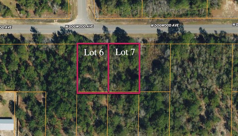 2 adjoining .23 ac lots on W Dogwood Ave. Buy 1 or 2 lots! Each lot can have 1 mobile home. Great location in growing Mossy Head. Mobile/manufactured homes allowed. Public water is available through Mossy Head Water Works (tap fee not paid); Power available on street; Septic would be required. Located off Paved Rd!