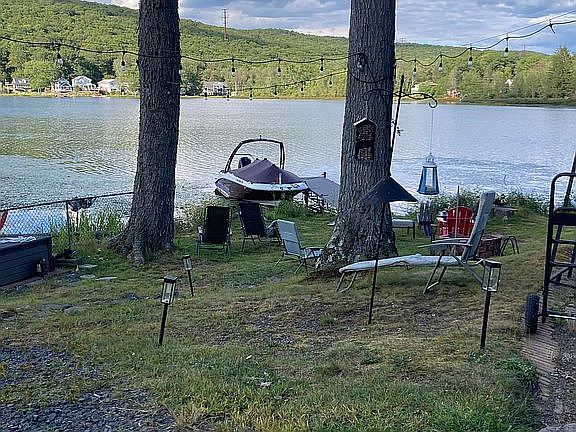 Waterfront lake house Nestled at the end of a dead end street, the lake is your front yard. There is a roll in dock and if interested, the Hurricane deck boat can be negotiated into the price. Nature is abundant and will keep you entertained all year long.