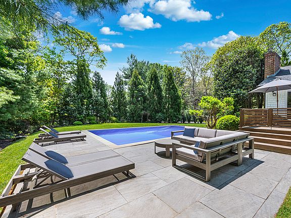 Rental Registration #: 25-298 Rental Reg #: 25-298 Enjoy 2700 sq ft of interior living space across two levels within this impeccably renovated cedar shingle ranch that offers the perfect blend of sleek modern luxury and bright coastal chic. An inviting entrance foyer leads to a spacious living and dining area with a vaulted ceiling and skylight above.. A wood-burning fireplace serves as the focal point of the living room with its stone and shiplap surround which also conceals a 50" flat screen. The open contemporary kitchen features Liebherr & Miele appliances, white custom cabinets, brilliant quartz countertops and a tiled backsplash. A large and private primary bedroom features an ensuite windowed bathroom with marble flooring, vanity, tiled walk-in shower and stylish designer fixtures throughout. A second ensuite junior primary bedroom boasts an abundance of natural light and views of the freshly landscaped property. The third bedroom adjacent to another full bath wows with a 5 ft x 5 ft picture window. The 900 sq ft, brand new in 2025, lower level with amazing natural light and access to the back yard and outdoor shower offers excellent living, recreational and amenity space. It features a stylish media lounge with gas fireplace and large TV, a gym and recreation area, a separate laundry pantry with washer/dryer, built-in storage cabinets, countertops and hanging space, a glass enclosed floor to ceiling wine closet and a gorgeous fourth full bathroom. Outside, a nicely furnished Cumaru wood deck extends across the back of the house and leads to an Ice Blue Stone patio positioned alongside one corner of the heated pool. An expansive lush lawn offers sun throughout the day . With access to Three Mile Harbor within the neighborhood and just a short distance to bay beaches and the village of East Hampton, this home gives you the priceless opportunity to relax, entertain and experience the best of your summer in the Hamptons! Currently available after August 15th for shorter term and September 2025. Listing ID: 869652