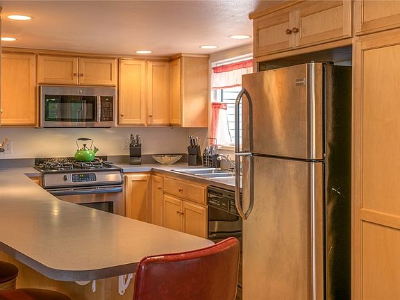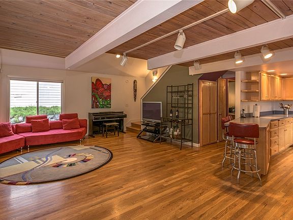 Skip the cookie-cutter homes and get a place with some style! Super clean open floorplan, 2200 sq ft, big entry, hardwood floors, vaulted ceilings, scads of newer vinyl windows. Fab kitchen with lots of counterspace, pullouts. Three bedrooms plus a bonus room (EZ to make a bedroom) Floorplan offers privacy of sleeping spaces with two separate staircases. Big deck,Gate 13, level lot and driveway, extra parking. Set up for a hot tub. Newer roof. All appliances- totally turn key. Awesome price!