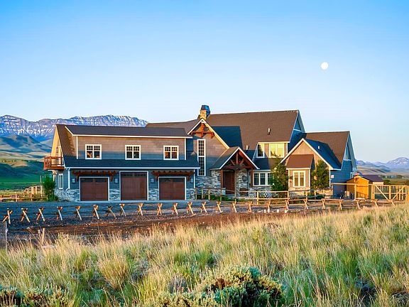 QWNER MOTIVATED TO SELL! Take advantage of the extraordinary opportunity to own this estate a stone's throw from Castle Rock in the picturesque Southfork Valley. Located near Cody- known as the East Gate to the famous Yellowstone National Park - this Custom-Built 4875 SF home, completed in 2019, sits on nearly 42 breathtaking acres with irrigation rights! From the moment you step into the entry, you’ll notice the artistry & craftsmanship that sets this home apart. Every window frames the 360° panoramic views of the surrounding landscape. The living room with massive rustic Douglas Fir trusses & a stunning Carrara marble fireplace flows seamlessly into a spacious kitchen & dining area anchored by an oversized rustic Farm Table. The Master Bedroom boasts Cathedral ceilings highlighted by a French Chandelier. The owner’s favorite space is the sunroom complete with a wood-burning fireplace & two walls of windows, opening to a charming pergola-covered patio. Upstairs is a 950 SF sanctuary retreat - perfect for an Office, Trophy Room, Artist’s Studio, etc. On the east side upstairs is the “Carter Mtn Bedroom’ & on the west side the “Castle Rock Bedroom”- each with their own bathrooms. Outside, a 3360 SF Barn building includes Stables, Workshop & 840 SF Apartment. Watch Elk, Deer, Eagles roam freely across this magnificent property. The owners didn’t miss a detail when planning this home – it is energy efficient with zoned central heat & air. Drone on YouTube under 6 Whitney Dr