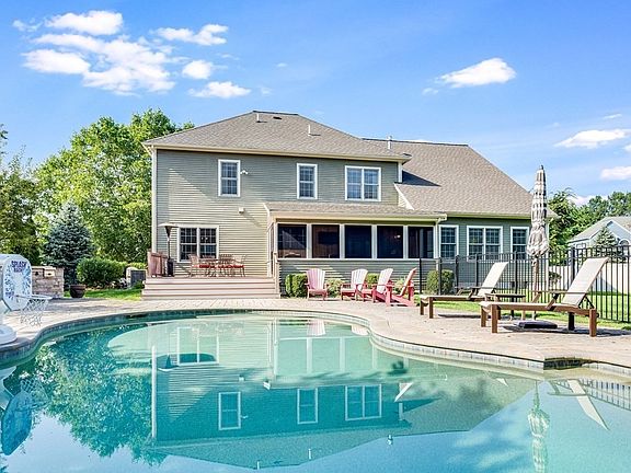 UPDATED STUNNING Colonial home situated at the end of a premier cul-de-sac in the desirable Stirling Wood Estates. Do not miss this home! Amenities this 4Bed 3.5Bath home has are endless, of which some include walking trails, parks, shopping, close to YMCA gym & highways. This house boasts beautiful hardwood flooring, that flows to a magnificent 3 season porch, a built-in luxury grill/ outdoor kitchen, & a gunite In-ground - heated salt-water pool. Main floor has a fully applianced kitchen w/ stainless steel appliances, oversized family room w/ high ceilings, open concept living/dining, an office and convenient half bath, laundry room and garage access. Spacious ensuite bedrooms on the top floor w/ large windows, walk in closets, & a Jack+Jill Bathroom. Partially finished lower level has a bonus room & ample storage for all your needs. A natural wood exterior w/ 3 car garage, additional parking. An entertaining house at its finest with so much more to offer.