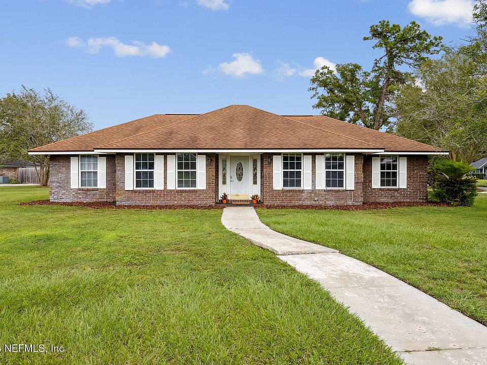 Room to play and unwind in this brick beauty with a huge yard! Welcome to your dream home in the lovely, established Orange Park neighborhood of Park West. This 4 bedroom, 2.5 bath home sits on a 0.62 acre corner lot. All new stainless-steel appliances. Beautiful new lighting, fans and fresh paint. Formal living and dining, huge family room with a vaulted ceiling and cozy fireplace. Only two rooms in the home are carpeted. (formal living/dining) 2 hot water heaters. Huge back yard is a rare find, and includes a large gate with direct access from the road.