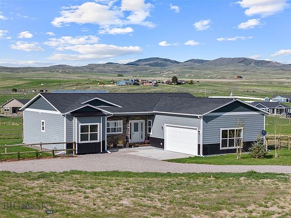 Enjoy plenty of space to spread out on 1.55 acres within a 30 minute drive to Bozeman. This meticulously maintained home is nestled amidst breathtaking 360-degree mountain views, with windows throughout that capture the scenic beauty in every direction. Large windows invite natural light inside, allowing you to take in the picturesque surroundings. Inside, you'll appreciate the elegant design, featuring white shaker soft-close cabinets, low-maintenance quartz countertops, a custom-tiled master shower, and an oversized 2 car garage. The thoughtful split floor plan offers privacy in the spacious master suite, while still being close enough to easily access the guest bedrooms rooms. The convenient mudroom entry from the garage leads directly to the kitchen for a smooth unloading process. The home’s exterior complements its natural surroundings with steel accents and a custom stone entry. Located just minutes from the confluence of the Missouri River, downtown Three Forks, mountain biking/hiking trails along with easy access to I-90 & US-HWY 287. See the virtual tour link for a 3D tour of the home. Call your agent today to schedule a tour and take in for yourself the wonderful views of four mountain ranges from the front porch!