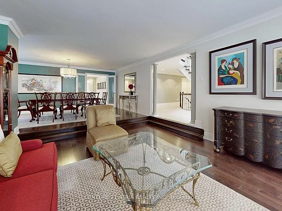 First time offered! Nestled in a family-friendly and safe court with only 9 houses on the street, this beautifully updated home is a rare gem. Spanning over 4500 sqft above grade on a uniquely shaped lot, this property offers both space and privacy. The pie-shaped lot extends 140ft deep and widens to over 100ft in the backyard, creating a rare private oasis within the city with no neighbours behind. The property includes an 8-car driveway and a large 2-car garage, perfect for families and guests. Be welcomed by a large and bright foyer, illuminated by a skylight and featuring elegant Italian porcelain flooring. Designed with the chef in mind, the kitchen features high-end Thermador appliances and luxurious quartzite and granite countertops, perfect for cooking and entertaining.