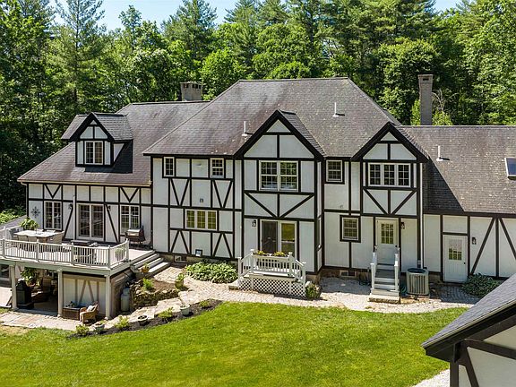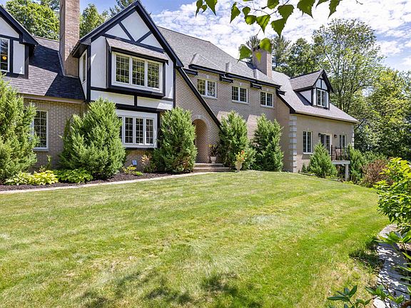This truly distinctive, sprawling English Tudor brick and stucco mansion is secluded on seven plus acres of park-like grounds at the end of a long, winding, gated drive. The home is one-of-a-kind, and boasts details and amenities that harkens back to a genteel and graceful age with an elegant presence seldom found in new, "cookie cutter" construction. Newly refinished hardwood floors with mahogany inlay, multiple fireplaces, coffered ceilings, a huge, open great room, additional dining and gathering areas, a home office, an atrium indoor swimming pool, a newer kitchen, and four generous bedrooms on the upper level complete the main living space. The lower level offers the potential for an in-law with its own separate entrance, and is complete with a second kitchen and bath. A detached three-car garage with bonus workout room, in addition to the two-car garage with direct kitchen access, provide ample storage for all your cars and toys. Definitely not a drive by, because you can't see it from the road! No showings after 6:00pm please. OPEN HOUSE SATURDAY 1-3PM
