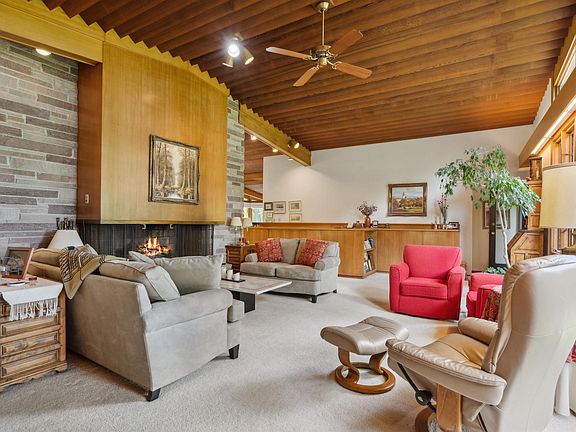 Welcome to 6 Winter Ridge Rd! This Magnificent Mid Century Modern Design Home is Sure to Appeal to Most Anyone! Situated on a 1.24 Acre Wooded Lot that Offers so much serenity surrounded by the everyday wildlife that roams through the neighborhood. This property is also part of an amazing neighborhood pool association should you choose to join. New owners also have the option of acquiring shares of stock in the Winter Valley Corporation which is a track of land owned by the corporation and is directly behind the neighboring houses on the Ridge. It is approximately 13.28 Acres M/L surrounded by Hartman Reserve and the Nature Trail. Now lets dive into this amazing house!!! This home offers over 4556 Sq. Ft. of living space spread out over 3 levels. Walking through the front door you are greeted with a 12' high redwood vaulted ceilings throughout the 1st floor and lots of natural stone. Directly to your left you enter this amazing kitchen with custom built Mahogany Ribbon Cut Cabinetry that is complimented with lots of granite counter top space, stainless steel appliances and lots of natural light from the large windows. Dining area just off of of the kitchen offers plenty of room for most any size table and chairs. Living room offers floor to ceiling windows looking out over the backyard. Wood burning fireplace with floor to ceiling stone surround and floating shelves make this a great place to surround yourself with friends and family. Additional sitting room just off of the dining area with floor to ceiling bay window. Down the hall you have a master suite where you are greeted with once again floor to ceiling windows, redwood wood wall behind your head board, walk in closet and master bath with Jacuzzi tub. Two additional bedrooms and one full bath on this level. There is also an office space on the main level for those that work from home. So far you can see this home has a lot to offer but the best may yet to come when you get the chance to enjoy a cup of coffee and read a book on the screened in porch that over looks the backyard and the valley below. Talk about a place to go when you need to unwind from a stressful day this is definitely the place to go! Lets make our way to the lower level where you have another bedroom set up for two. Yep two egress windows with divider wall, two closets and set up for two boys or two girls, additional bathroom, family room with gas fireplace, storage room, work shop area, laundry room and yep lots of larger windows for all the natural light. Plus it is a walk out basement! I could continue to go on and on about this beautiful well built home, the neighborhood and all it has to offer but now its time for you to come take a tour and see if it makes you feel right at home!!!
