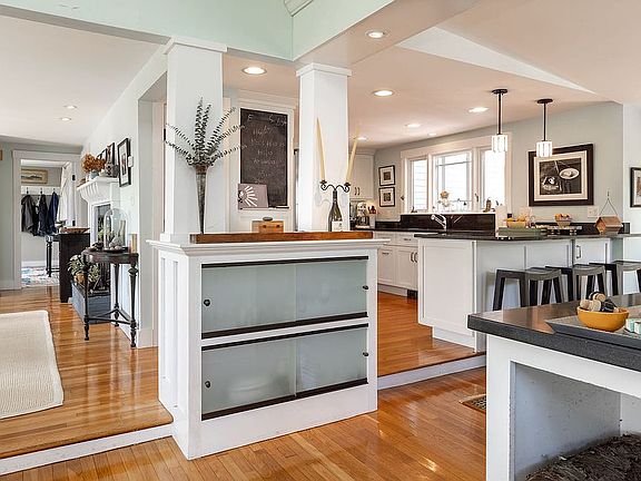 Great South End location...tucked away on a lovely lot w/ peaks of the ocean. New roof and updated electrical. Floors have just been refinished in this open, light filled, 3 bedroom, 2 bath cape. Dine in front of the antique fireplace, relax by the fire in the large family room w/ cathedral ceilings and huge windows. Rinse off from the beach, which is just steps away, in the outdoor shower. Great house, great location, great price!