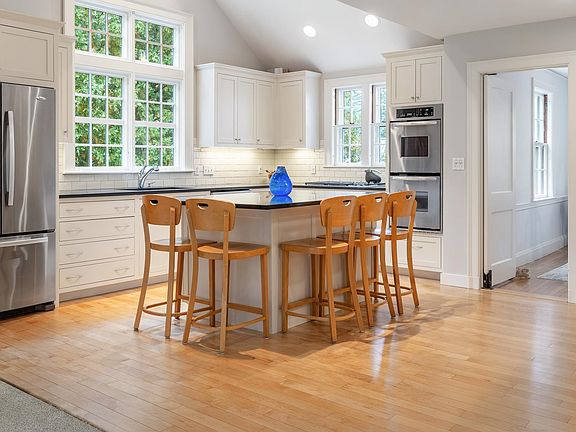 Whenever you hear someone refer to a property as “a true Hanover classic,” this is the house they mean. Tucked into one of town’s most convenient and quietest “walk-to-everything” neighborhoods this 1927 Trumbull and Nelson steel-beamed and wood framed Colonial is a testament to the homebuilder’s art. Updated and expanded by the current owners, the kitchen/family addition blends the new and existing seamlessly. Formal and informal living and dining spaces are on the first floor and bedrooms on the second and third levels. The vestibuled front entry leads directly to a graciously proportioned living room with a wood burning fireplace, the formal dining room and an office. Original hardwood floors, detailed millwork, corner cabinets and built-ins are found throughout. The kitchen, renovated with a classic sensibility is conveniently located just off the sunny and open family room. The second floor is comprised of three amply sized, bright, and cheery bedrooms all with windows on two walls, that share a hall bathroom, plus a spacious primary bedroom suite with cathedral ceilings, walk in closet and an attached bath with soaking tub and shower. The third floor offers a fifth bedroom that features walk-in closet and office. A serene, open and flat .77 acre landscaped backyard, a spacious screened porch and deck, a fire pit, and plenty of privacy. The 2-car detached and one car under garages have space for storage. Bright, charming, and perfectly located, this is a gem.
