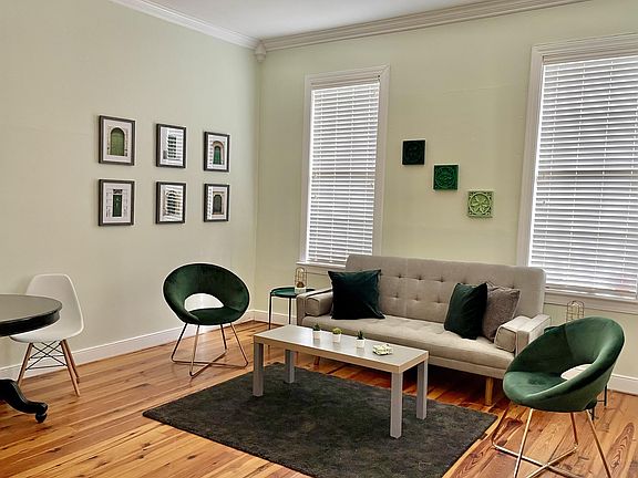 AVAILABLE August 17th INCLUDES FURNITURE & DECOR Lovely 2 bedroom downtown unit. Tall ceilings with huge windows that make this unit light and bright. The kitchen has stainless steal appliances and granite counters. The bedrooms are large with good sized closets. Bedrooms are large enough to share (can fit 2 full beds in each bedroom). Extra $100/month/per person for each tenant above 2. Max 4. Has washer and dryer, hardwood floors, Camera. Great downtown location only a couple houses from Meeting Street and less than 2 blocks to upper King. Parking in driveway can be added for $150/month (can fit 3 cars) . No smoking, Indoor cats accepted with no pet fee or deposi. Dogs not allowed