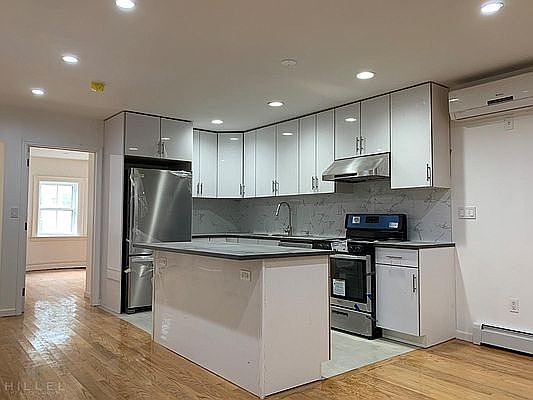 No Fee* 3 Bed 1 Bath PRIVATE Backyard Welcome home to this gorgeous spacious 3 Bedroom 1 Bathroom Apartment. This unit is completely brand new. Apartment features beautiful oak hardwood floors throughout. Central A/C & Heat! Lots of natural sunlight, high ceilings. Gorgeous Open Kitchen with granite island countertop, stainless steel appliances including dishwasher, Apartment also features private backyard *Near M & L Trains *Pets case by case (Upon Approval of Landlord) *Split units for Heat & A/C **Option for Washer & Dryer in Basement**