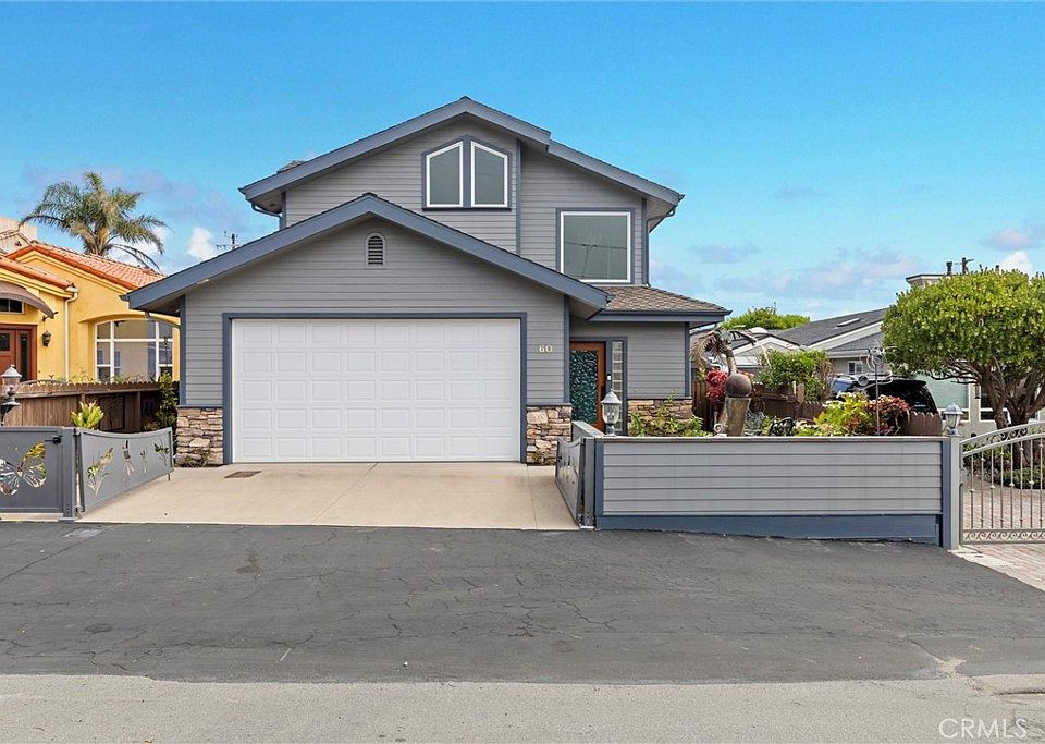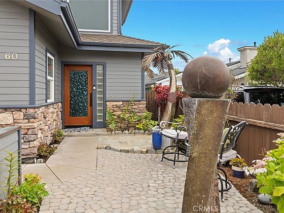 Prime location & quality design allow 60 5th Street to enjoy ever changing views of the nearby Pacific Ocean. A translucent glass entry door opens to a spacious foyer. Dark wood trim flows throughout the distinctive plan. An impressive staircase with display niche curves upward. First level includes a huge bedroom and a well appointed bath. W/D space is beneath the stairs. Upper level includes a great room with vaulted ceilings and lots of glass. Living and dining areas are compact. The kitchen is spacious with lots of cabinetry and a full array of quality appliances. Primary suite has lots of light, more views & a separate jetted tub and shower. Yard areas are fully landscaped and accessory buildings in the backyard offering many options. Coastal Access is near at the 5th Street bluff.
