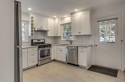 Gorgeous, completely remodeled apartment located in a central and peaceful area of Watertown. Enter in and you will find a spacious sun drenched living room with large windows. Further in a brand new kitchen with quartz countertops, tile flooring, stainless steel appliances, and quality cabinetry await. The unit features three bedrooms including a master suite with it's own private bathroom and full guest bath. There is ample closet space is present in all three bedrooms. Both beautiful bathrooms feature marble tiling, quartz counters, and Kohler products. One full private bathroom is connected to the master bedroom and one full bathroom is available for all other residents. Storage space is downstairs with laundry/dryer hookups. Highly efficient central a/c and gas powered heating. Off-street parking permits three cars.