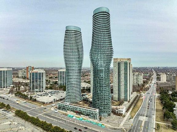 Welcome to the Iconic Marilyn Monroe Tower at 60 Absolute Ave! This stunning 1-bedroom, 1-bathroom suite offers a breathtaking, unobstructed northwest view with a 90 sq. ft. wraparound balcony (as per the builder's plan). Enjoy modern living with 9-ft ceilings, granite countertops, laminate flooring, and an open-concept kitchen. Includes one parking space and one locker. Residents have access to 30,000 sq. ft. of state-of-the-art amenities, including the exclusive club at the top of Absolute World Tower. Enjoy indoor and outdoor pools, a full gym, basketball and squash courts, and more. Prime location in the heart of Mississauga. steps to Square One Mall, Walmart, City Centre, public transit, the main bus terminal, Central Library, and community centres. Minutes to Hwy 403, 401, QEW, and Trillium Hospital.