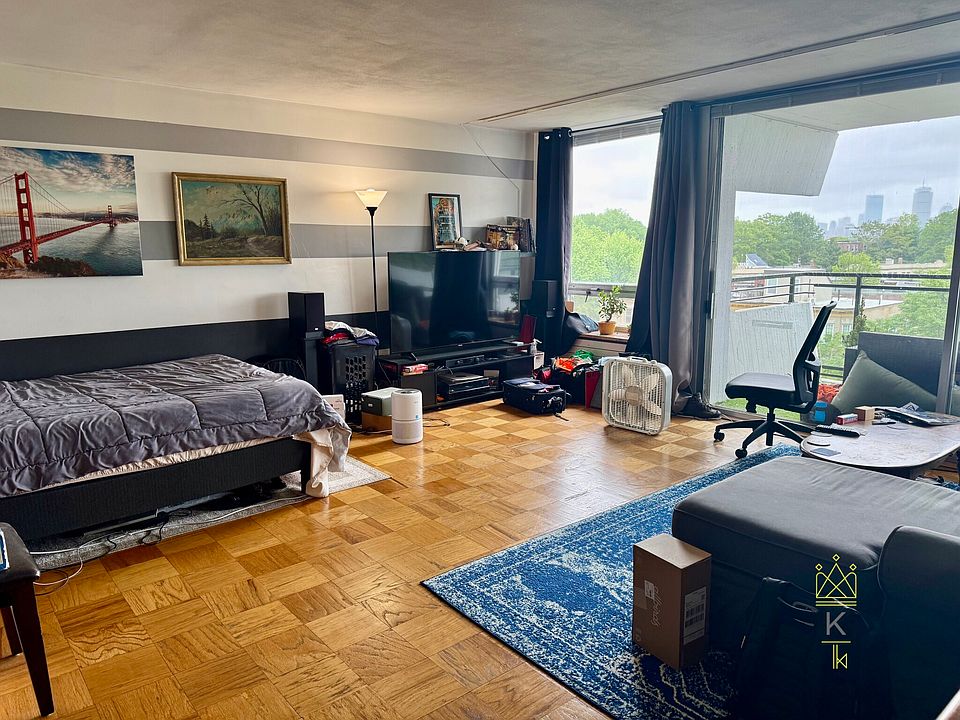 Spacious studio unit with a large private balcony to use as an outdoor dining area during the warmer months. A newly renovated building throughout (both upper and lower lobbies, mailroom, all hallways, elevators & laundry room.Central air, separate galley kitchen with stainless steel appliances. Heat and hot water included. Professionally managed, 6th floor unit has amazing views of The Boston skyline.