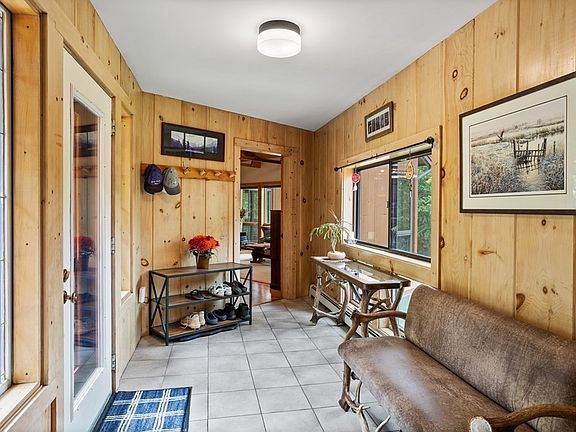 More than a home, a lifestyle! This expansive rustic contemporary is nestled on 2.39 secluded acres of garden, grass, patios and direct conservation trail access for hiking, dog -walking or cross-country skiing. The floor plan offers an “in-law” wing or multi purpose studio, housing a kitchenette, full bath, sitting and sunroom, plus an in-home office space on the first level. The main house WOWS with a 22ft high front to back living /dining room with den space, and sitting area in front of the cozy wood stove. Not to be missed, Cherry cabinets, Wolf gas cooktop, Corian counters, modern appliances provide an efficient kitchen plus another office nook! The main bedroom with its window seat, and full bath are also on this level. An additional bedroom, bath, utilities, and storage complete the lower level. Two sunrooms, an outdoor hot tub, fully equipped custom designed gym, full bath, and indoor sauna make this property a must see!