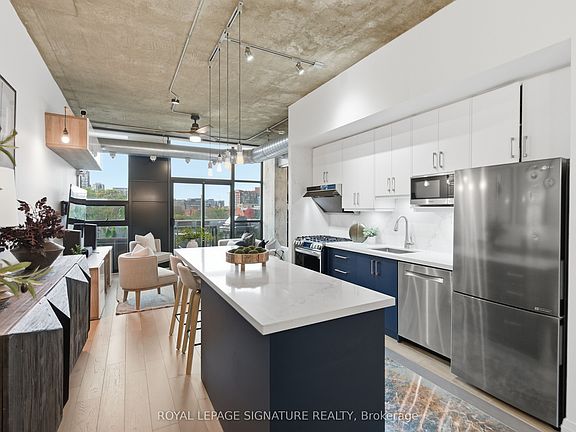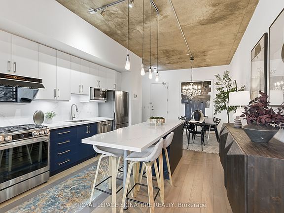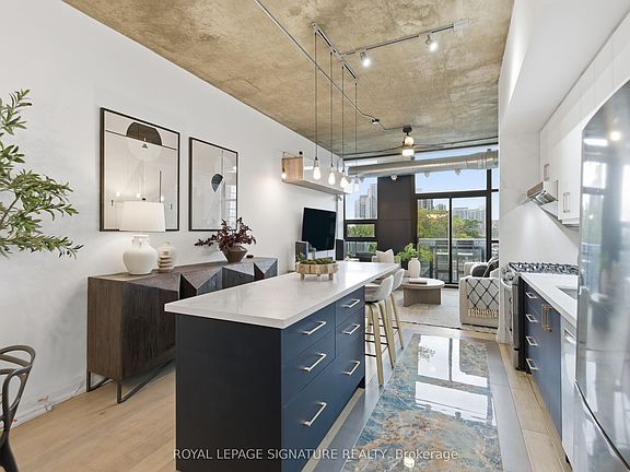 Welcome to this beautiful 1 bedroom + den loft in the highly sought-after Sixty Loft building, ideally located in the heart of King West. This bright and spacious suite offers the perfect blend of modern luxury and urban charm, featuring soaring high ceilings, floor-to-ceiling windows, lovely west-facing views that fill the space with natural light. Beautifully renovated in 2021, the loft showcases exquisite flooring, sleek kitchen cabinetry, stainless steel appliances, modern fixtures, and a custom centre island, perfect for hosting. The open-concept layout is ideal for both relaxing and entertaining, with a stylish kitchen that flows seamlessly into the charming living and dining areas. The spacious primary bedroom offers a peaceful retreat with ample room for a king-sized bed and features a serene, loft-inspired atmosphere. Built-in storage that blends design and function in the chicest way. The luxurious bathroom is designed for ultimate comfort, complete with heated flooring and a jetted bathtub, a rare find in loft living. Enjoy breathtaking sunset views from your private balcony equipped with a gas line hookup for barbecuing. Urban living with a neighborhood feel, parks, patios, and a future Ontario Line station just steps away!