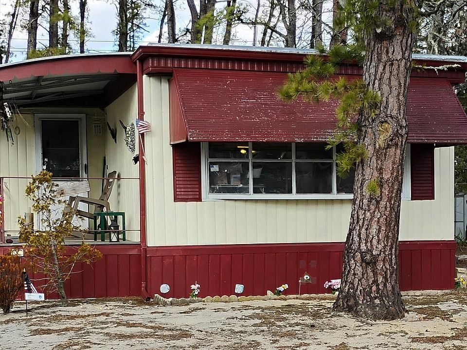 A manufactured home in Pine Ridge at Crestwood. Large eat in kitchen with a bay window and living room both part of front extension. Bathroom has double walk-in shower. Large main bedroom. Two clubhouses, library, game room, and more.
