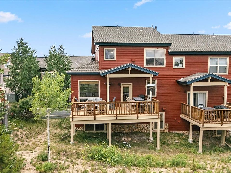 Location Location Location! Backing National Forest with unobstructed Forest and Peak One views! You know you are in the mountains at this residence. Huge private deck off the great room sticks out into the forest with Peak One front and center, Gyot and Baldy off to the South and Buffalo mountain looming above. This property features 5 bedrooms, two ensuite and three bunk rooms. The primary suite has vaulted ceilings, a walk-in closet, a gas fireplace and peaceful South views over the forest to mountain peaks. The Washer and Dryer is conviently located in hall between the primary and 2nd ensuite bedrooms. The great room features three walls of glass, a stone and log gas fireplace, large dining area and kitchen with new stainless steel appliances and granite counters. The huge deck has seating for a small army and a South-West exposure. Walk out your door to national forest trails and the endless Eaglesnest Wilderness. There is a lifetime worth of waterfalls, ponds, forest and valleys full of wild life to explore! The attached 2-car garage has plenty of storage for all your stuff. The club house has a pool, hot tub, games and hang out area. These premier end unit properties backing the national forest rarely come for sale.