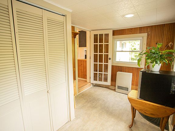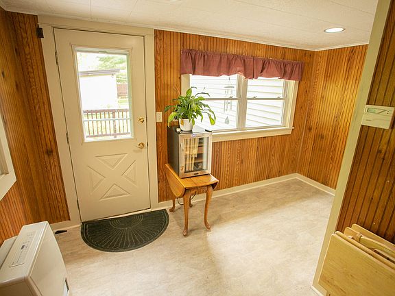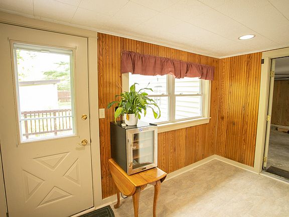 Welcome to this charming Cape Cod-style home featuring 4 bedrooms and 2 bathrooms. Step into the cozy, heated mudroom, a perfect space for storing winter gear before entering the inviting open-concept dining and kitchen area. The freshly painted kitchen boasts tile flooring, an island peninsula, while the dining room showcases newer laminate floors. The adjacent living room also features hardwood floors and a stylish heat stove, enhancing the home's warm and welcoming atmosphere. The first floor includes two bedrooms, and a full bath conveniently located in between. One of these bedrooms has been thoughtfully equipped with a laundry hookup for added convenience. Upstairs, you'll find two generously sized bedrooms with cathedral ceilings, built-ins, new carpeting, and fresh paint. The largest bedroom is equipped with a heat pump, ensuring year-round comfort. The home benefits from natural gas heating, with nine new windows enhancing energy efficiency. Additionally, the forced air furnace has been upgraded to include central air conditioning. The property also features an attached two-car garage and an impressive three-plus-bay insulated garage in the backyard, complete with OSB installation from 2023. Recent updates include a whole-home generator, as well as paving work from 2017, sealed in 2022. This well-maintained home offers both comfort and functionality, making it a must-see.