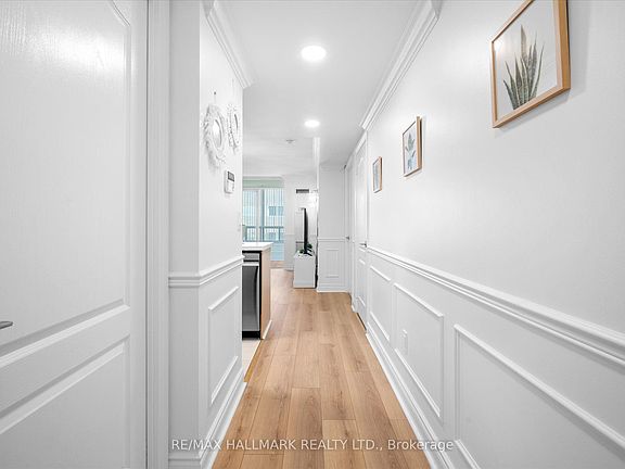 Beautifully renovated 1+1 unit with parking, set right beside Scarborough Town Centre-one of the most connected and convenient hubs in the east end. This bright, spacious suite offers large windows, custom wainscoting, and crown molding throughout. The open-concept living and dining area extends into a versatile den that works well as a home office, nursery, reading nook, or extra storage space. King-sized bedroom includes a walk-in closet and opens to a cozy balcony with east and south-facing skyline views. With direct access to transit and just steps from Scarborough Town Centre, you're minutes from Highway 401, making this an ideal location for commuters or anyone who prefers vehicle-free living. Building amenities include a 24-hour concierge, indoor swimming pool, gym, mini theatre, sauna, party room, car wash station, and ample visitor parking. A solid opportunity in a highly accessible neighbourhood.