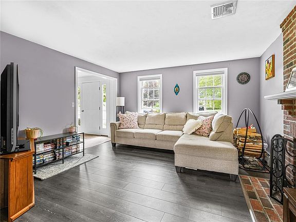 Set in a picturesque and sought-after neighborhood, this classic Colonial offers impressive curb appeal and comfort on a beautifully manicured lot. A welcoming front entry leads into a freshly painted interior with generous living space throughout - including a relaxing family room with a cozy brick fireplace, a sun-filled living room with newly refinished hardwoods, and a finished lower-level rec room great for entertaining. The updated quartz kitchen features a dining nook with sliders out to the back deck, and easily flows into the formal dining room. A convenient half bath with laundry completes the main level. Upstairs, the spacious primary bedroom suite offers new carpet, a walk-in closet, and a private en suite bath, joined by three additional bedrooms and a large full bath. Enjoy outdoor living on the expansive deck overlooking a sprawling fenced-in yard with a shed, ideal for play and relaxation. Additional highlights include a new roof, young central AC system, and a two-car garage. Conveniently located near Wrentham Village Premium Outlets, Gillette Stadium, and major highways for an easy commute. Offering privacy, space, comfort, and style - this gem will not last.