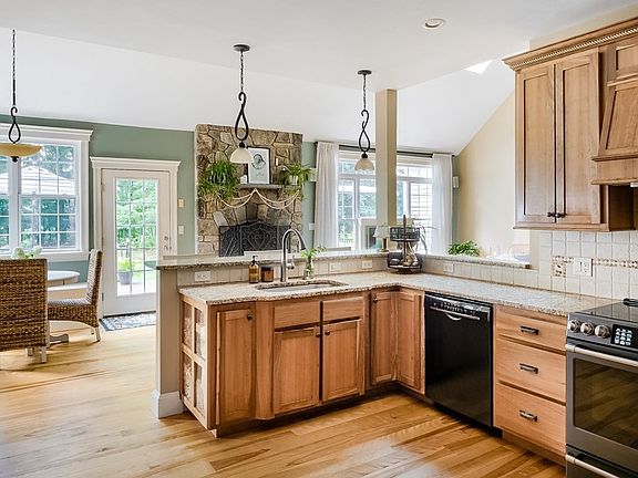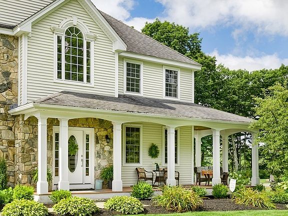 The dream home is now a reality & ready for YOU! Custom designed home w/ so many details: Open floor plan offers Birch hdwd floor , fieldstone FP, 9' ceilings, skylights and interior balcony . Open to dine in kitchen with granite breakfast bar, separate built in dining area , tons of light cherry cabinetry and fully appliance . cherry beam accented ceilings & French doors in DR & office, grand foyer w/ open staircase, transam windows, 1st floor master suite, offers new private bath & walk in closet . (3) spacious bedrooms on the 2nd floor plus 2nd floor great room . Hardwood floors thru out paired with beautiful woodworking features . Outside living space is equally impressive with composite farmers porch , stone front , spacious composite rear deck creates your own private paradise with Gunite pool & waterfall feature, finished pool house inc wet bar & bath. Prof landscaping and seasonal pond views make this home spectacular.