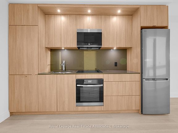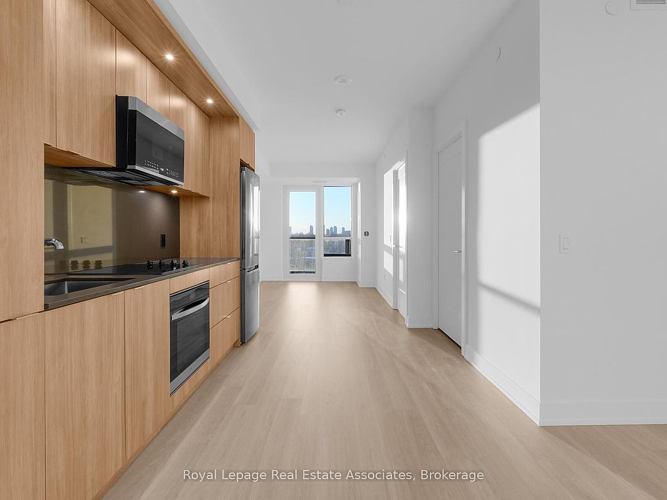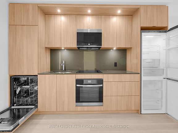 Welcome to Westerly 2 by Tridel, a modern condominium community offering thoughtfully designed living in the heart of Islington-City Centre West. This bright 1-bedroom plus den suite features 599 sq. ft. of well-planned interior space with clean contemporary finishes and an open-concept layout suited to comfortable everyday living. The kitchen is equipped with full-height cabinetry, integrated stainless steel appliances, quartz countertops, and under-cabinet lighting. It flows seamlessly into the combined living and dining area, where wide-plank flooring and large windows create a welcoming, light-filled atmosphere. A walk-out from the living room extends your living space outdoors onto a private balcony. The bedroom includes a full-height window and ample closet space, while the generous den provides the flexibility for a home office or additional work area. The modern 4-piece bathroom features contemporary tilework and a sleek vanity. In-suite laundry is tucked neatly into a dedicated closet, and the suite includes one parking space. Residents enjoy access to a fitness centre, party and meeting rooms, guest suites, and 24-hour concierge. Ideally located steps from Islington Station, parks, grocery stores, and community conveniences, this suite offers a comfortable blend of modern living and everyday practicality in a well-connected Etobicoke neighbourhood.
