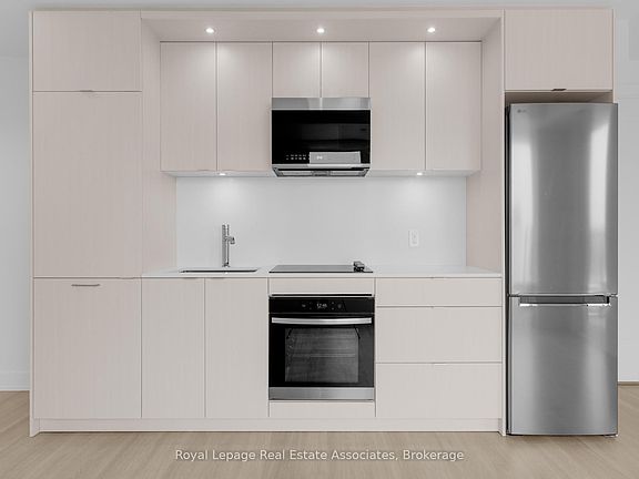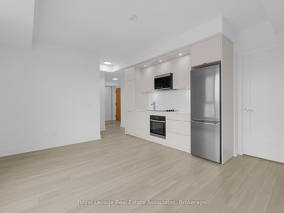 Welcome to Westerly 2 by Tridel, where contemporary design meets everyday convenience in the heart of Islington-City Centre West. This bright and thoughtfully designed 1-bedroom, 1-bathroom suite offers approximately 567 sq. ft. of well-planned living space, complemented by a functional layout and a private balcony for added outdoor enjoyment. The modern kitchen features sleek flat-panel cabinetry in a soft neutral finish, quartz countertops, integrated stainless steel appliances, and under-cabinet lighting. It flows seamlessly into the open-concept living and dining area, highlighted by wide-plank flooring, ample space for furnishings, and a walk-out to the balcony-ideal for relaxing or entertaining. The bedroom is well-proportioned with a large window and generous closet space, offering comfortable separation from the main living area. The contemporary 4-piece bathroom is finished with full-height tilework, a deep soaker tub, chrome fixtures, and a sleek vanity with integrated lighting. In-suite laundry is conveniently tucked into a dedicated closet off the main living space. This suite includes one parking space and one oversized locker, providing both convenience and additional storage. Residents of Westerly 2 enjoy access to exceptional building amenities including a fitness centre, yoga studio, co-working lounge, party room, kids' zone, outdoor terrace, and 24-hour concierge. Ideally located just steps to Islington Subway Station, parks, grocery stores, dining, and everyday conveniences, this suite offers a perfect blend of modern living and connectivity in a desirable Etobicoke neighbourhood.