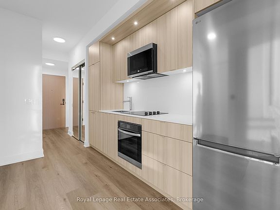 Welcome to Westerly 2 by Tridel, a contemporary community in the heart of Islington-City Centre West. This bright and efficiently designed 1-bedroom suite offers 509 sq. ft. of well-planned living space with clean finishes and a functional open-concept layout ideal for modern urban living. The kitchen features full-height cabinetry, quartz countertops, integrated stainless steel appliances, and under-cabinet lighting, flowing seamlessly into the combined living and dining area. Wide-plank flooring and large windows create a naturally bright interior, while a walk-out to the private balcony offers an inviting outdoor extension. The bedroom includes a full-height window and a generous closet, complemented by a stylish 4-piece bathroom with contemporary tilework and a sleek vanity. In-suite laundry is conveniently tucked away, and the suite includes both one parking space and one locker for added practicality. Residents benefit from amenities such as a fitness centre, party and meeting rooms, guest suites, and 24-hour concierge. With Islington Station, parks, grocery stores, and everyday conveniences just steps away, this suite delivers comfortable and well-connected living in a desirable Etobicoke location.