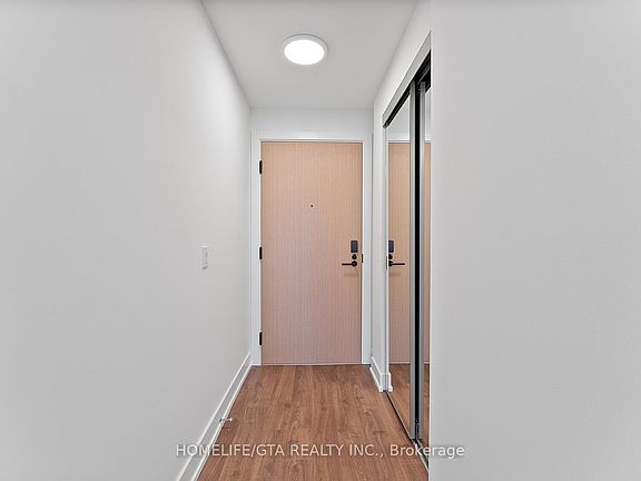 Welcome to Westerly II by Tridel. This one Bedroom/1 Bathroom unit is available for immediate possession. Unit 614 boasts an efficient floor plan with tons of storage, laminate flooring throughout and a large 3 pc bathroom. Unit offers an open concept living dining area which offers large windows with a east views of downtown Toronto. Living area is large enough to have a small dining table and a tv and sofa. Primary bedroom offers a rarely offered walk in closet and floor to ceiling windows with east views. Westerly II offers one of the best 2-Storey Lobbies in the city, a good sized gym, grand party room and a business/work lounge that you can book. This building is perfect for commuters and those who work from home. There's ample of visitor parking offered in the building. Come be one of the first residents in the building today! 1 Locker Included.