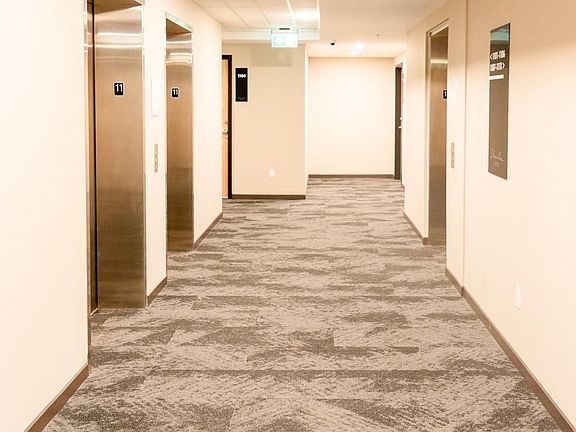 Corner suiteFloor-to-ceiling windowsContemporary kitchenSleek cabinetryQuartz countertopsStainless steel appliancesOversized balcony