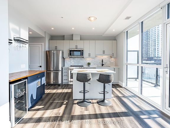 This 797 total square foot one-bedroom, one-bathroom corner unit offers modern design, high-end finishes, and an open-concept layout filled with natural light. Featuring 9-foot ceilings, floor-to-ceiling windows, custom closets, upgraded appliances, in-suite laundry, and a private balcony with stunning views of Victoria Park, this home has been elevated with over $42,000 in upgrades. One underground parking space and a storage locker are included. The building provides exceptional amenities including a concierge, a social lounge with catering kitchen, a landscaped seventh-floor terrace, a fully equipped fitness centre, yoga and wellness rooms, and secure vehicle and bicycle parking. Located in the heart of downtown, this condo is just steps to Victoria Park, community festivals, restaurants, cafés, shopping, Google, top universities and colleges, and the LRT. Perfect for young professionals, first-time homebuyers, or investors, this property combines convenience, style, and unmatched urban living.