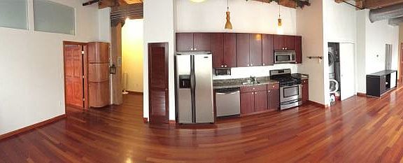 this spacious loft features Brazilian Cherry hardwood floors, stainless steel appliances, granite counter-tops, dishwasher, large windows, updated bathroom, washer and dryer in unit, central heat and air conditioning, 2 tandem parking spaces